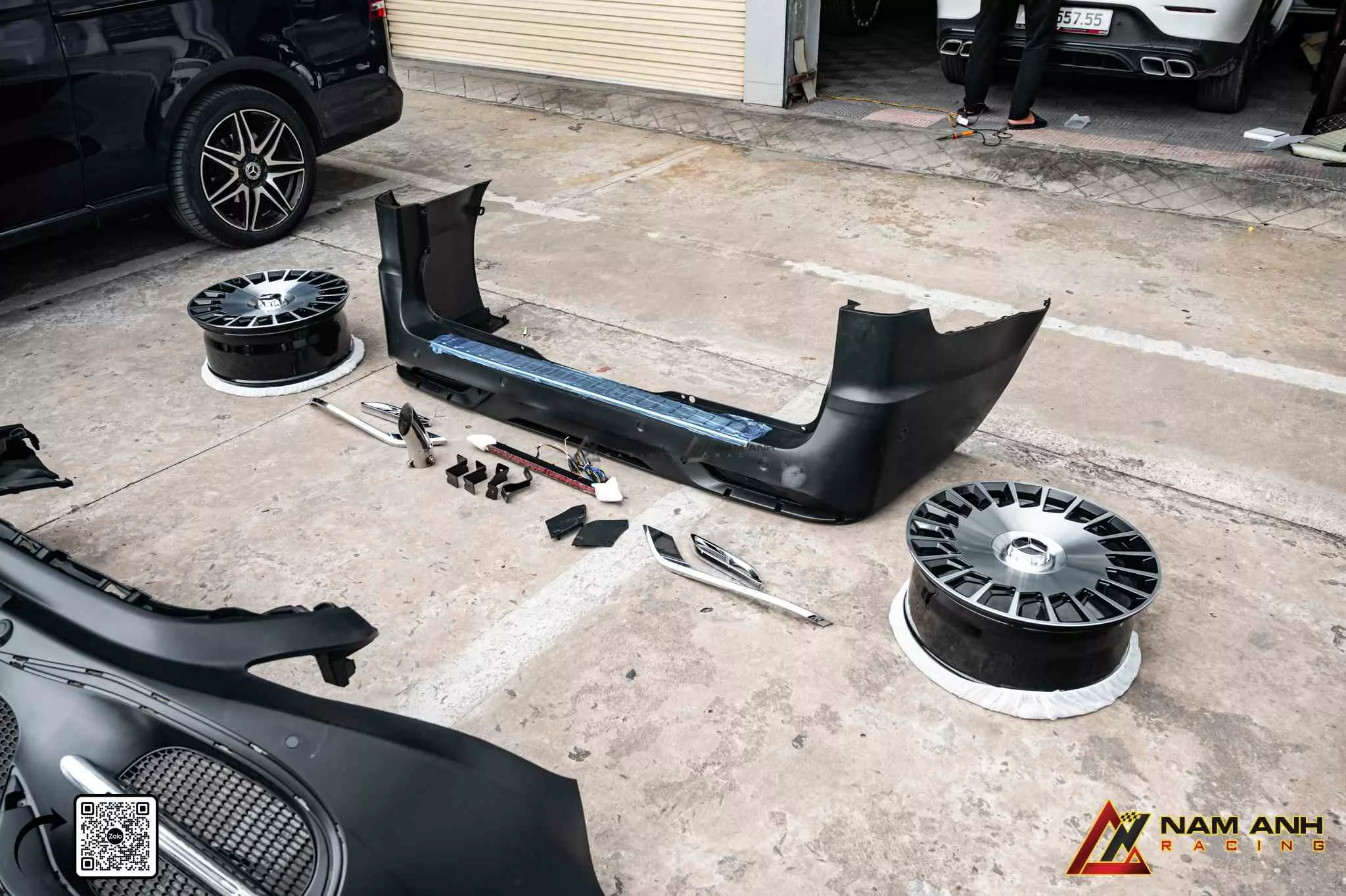 Bên cạnh thi công bodykit, Nam Anh Racing tư vấn phối hợp mâm, đèn và nội thất MBS đồng bộ, tạo tổng thể hài hòa và sang trọng cho V-Class. Dịch vụ linh hoạt, hỗ trợ thi công trực tiếp hoặc giao hàng trên toàn quốc, đáp ứng mọi nhu cầu nâng cấp ngoại hình cho khách hàng với sự tiện lợi tối ưu.